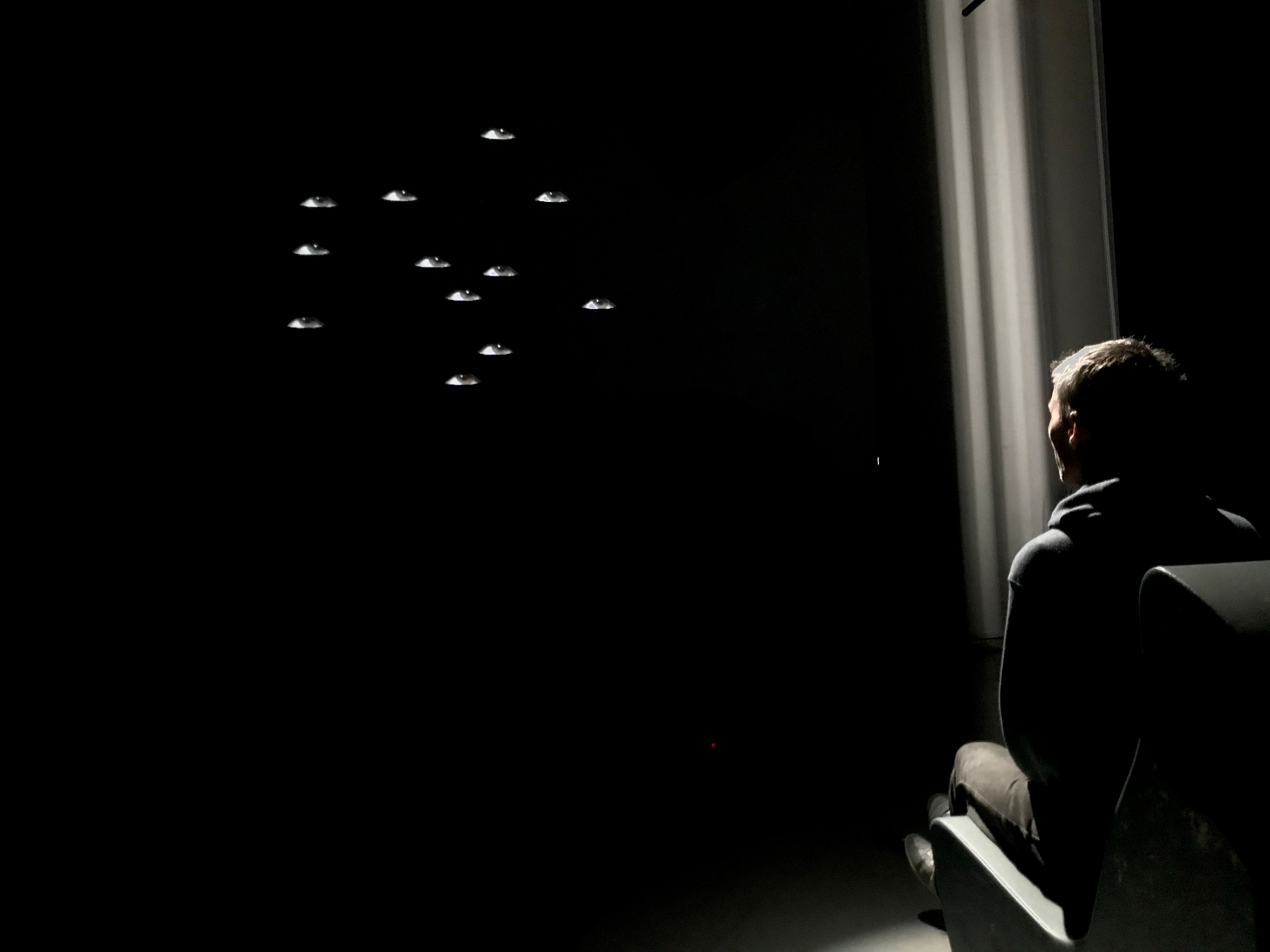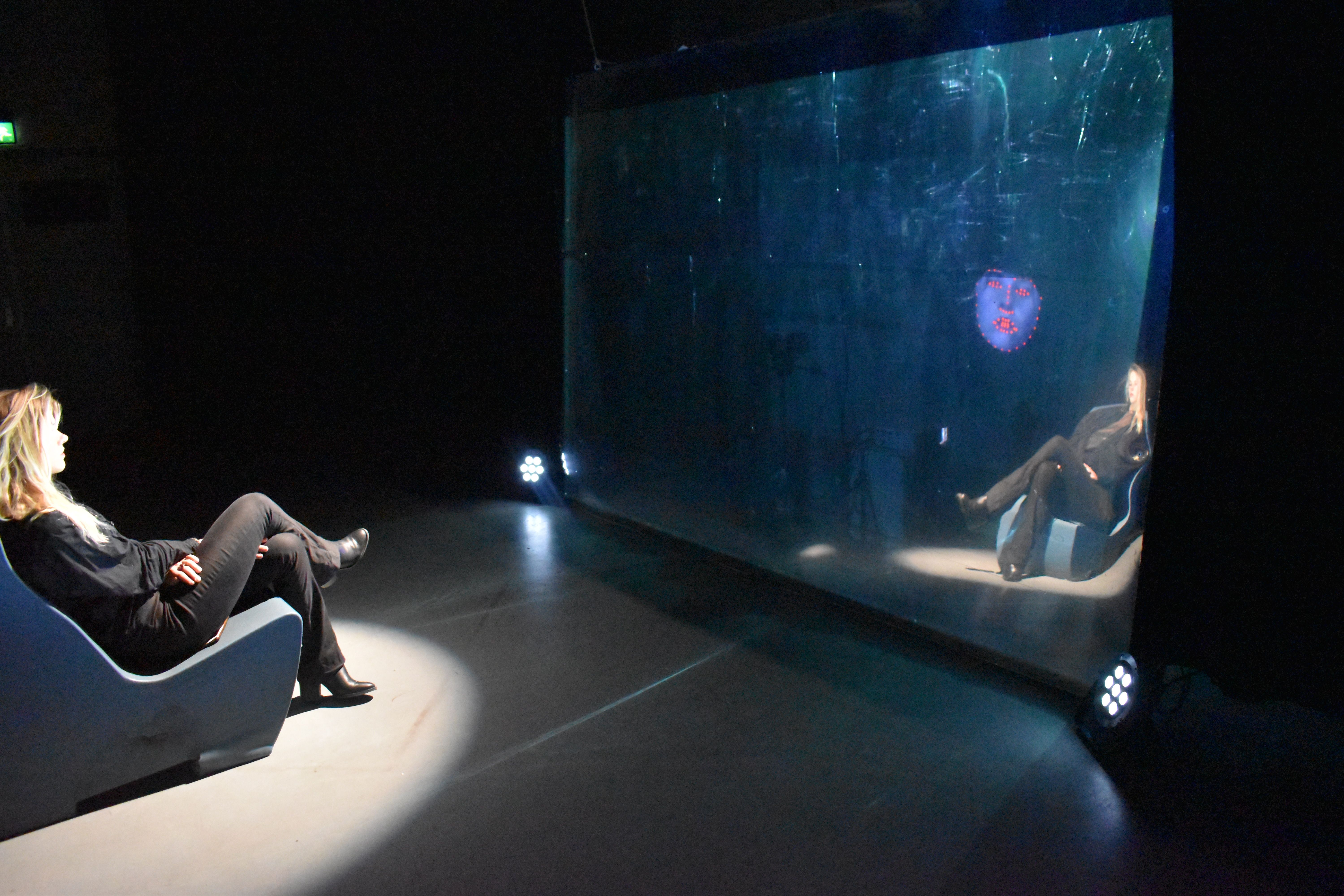 A mirror reveals not a reflection but a slowly forming image of an eye that matches the viewer’s. With each blink, new eyes appear until the viewer’s face is reconstructed entirely from their own gaze. Once assembled, the artificial face mimics the viewer’s movements. The piece explores recognition, intimacy, and the unsettling reciprocity between observer and machine-generated self.