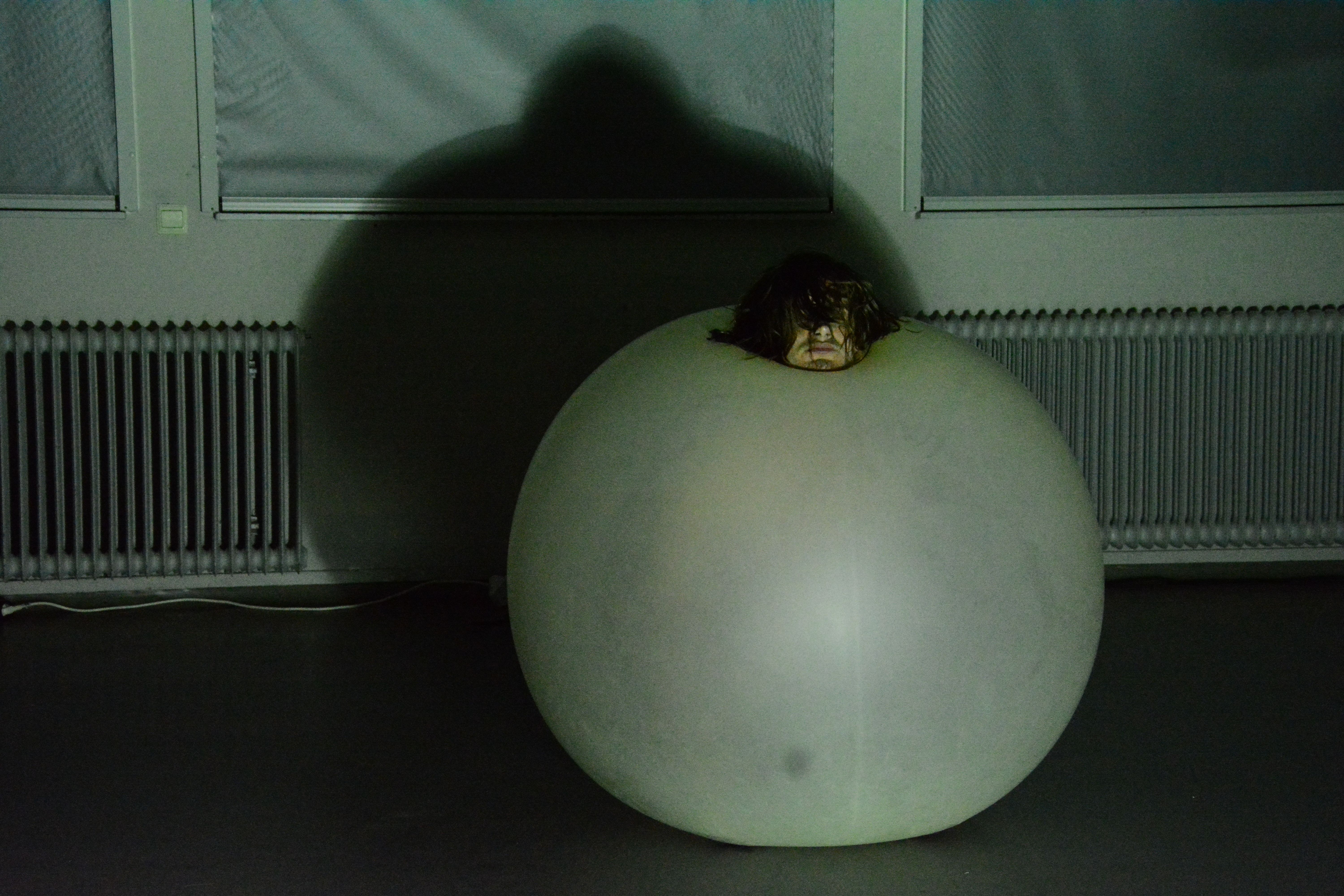 A performance piece, based on a dream about people trapped in fleshy globes.